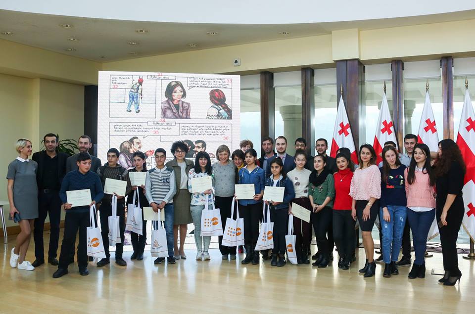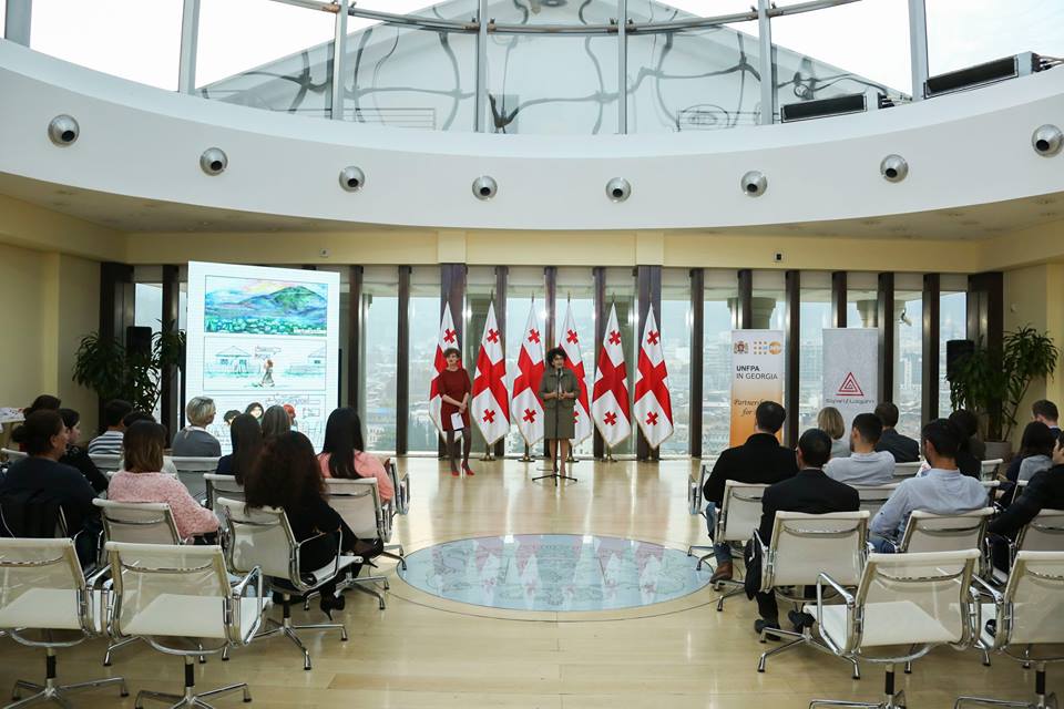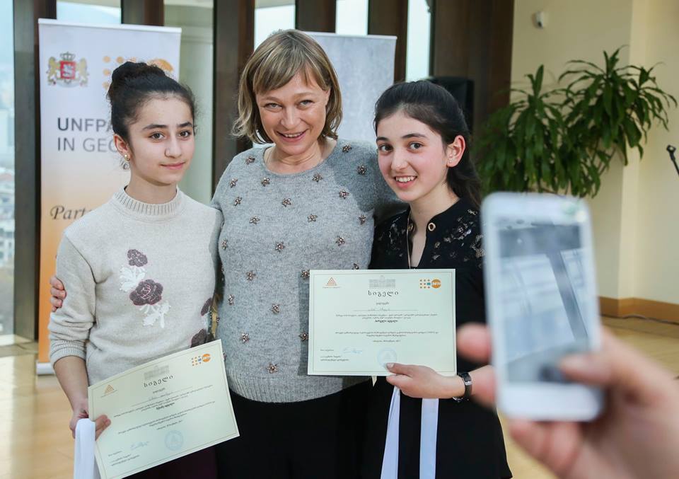 ღონისძიების მეორე ნაწილი პრეზიდენტის სასახლეში ჩატარდა, სადაც პროექტის მონაწილეებისათვის დიპლომების და კონკურსში გამარჯვებული მოსწავლეებისთვის საჩუქრების გადაცემის ცერემონია გაიმართა. პროექტის მონაწილეებს სიტყვით მიმართეს პირველმა ლედიმ, გაეროს მოსახლეობის ფონდის საქართველოს ოფისის ხელმძღვანელმა ლელა ბაქრაძემ, ბაია პატარაიამ. კონკურსის ერთ-ერთმა გამარჯვებულმა მალაკ აშიროვამ თავისი ესსე წაიკითხა. პროექტის მონაწილემ ჯეიხუნ ნარზალოვმა პროექტში მიღებულ გამოცდილებებსა და პროექტის მნიშვნელობაზე ისაუბრა.