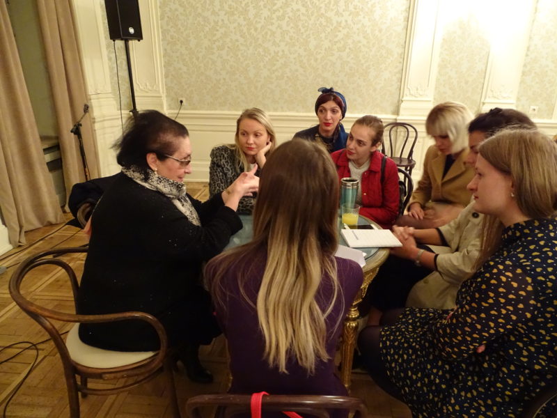 საღამოს დასკვნით ნაწილს თავისუფალი ფორმატი ჰქონდა: დარბაზში მყოფ აუდიტორიას შესაძლებლობა მიეცა, სამ მრგვალ მაგიდასთან გადანაწილებულიყო და საქართველოში ფემინისტური მოძრაობის უფროსი თაობის წარმომადგენლებთან – ნანა ბერეკაშვილთან, ჩარიტა ჯაშთან და მარინა თაბუკაშვილთან ერთად ესაუბრა ფემინიზმთან დაკავშირებული საკითხების შესახებ.