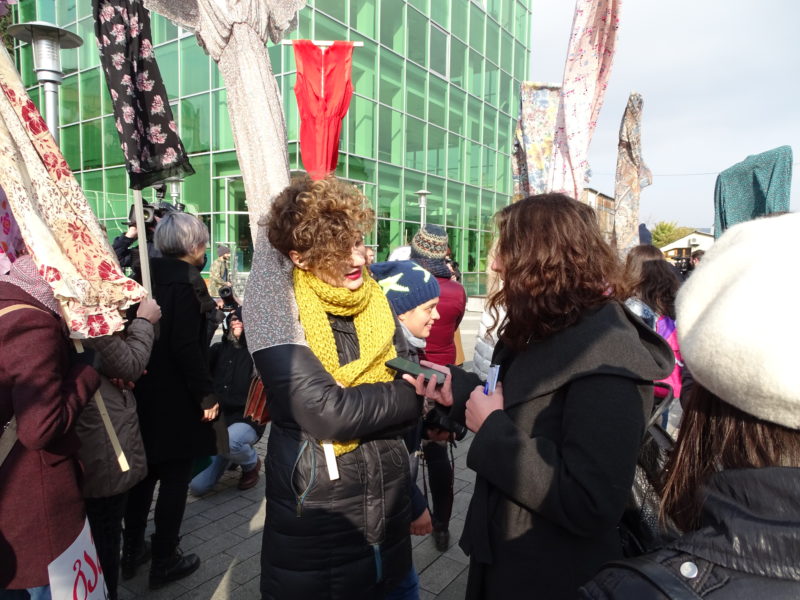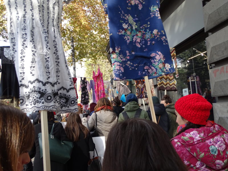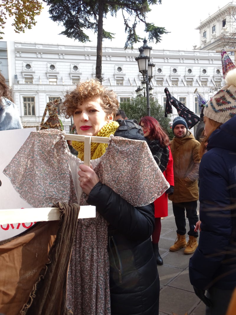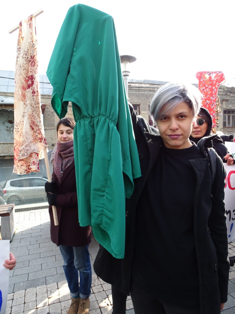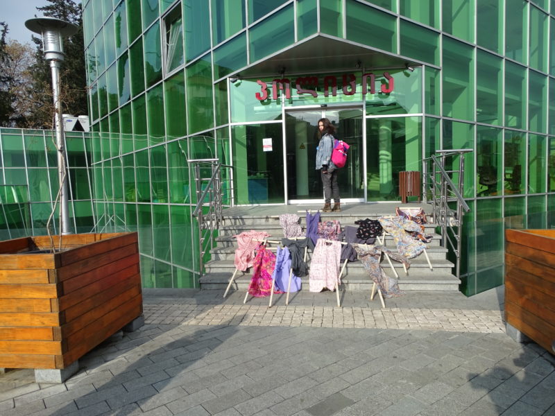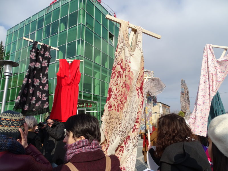 აქცია-პერფორმანსის მონაწილეებს ხელში ჯოხზე წამოცმული კაბები ეჭირათ, რაც სიმბოლურად ძალადობის მსხვერპლი ქალების ჩაკარგულ ხმასა და წართმეულ უფლებებს განასახიერებდა.
