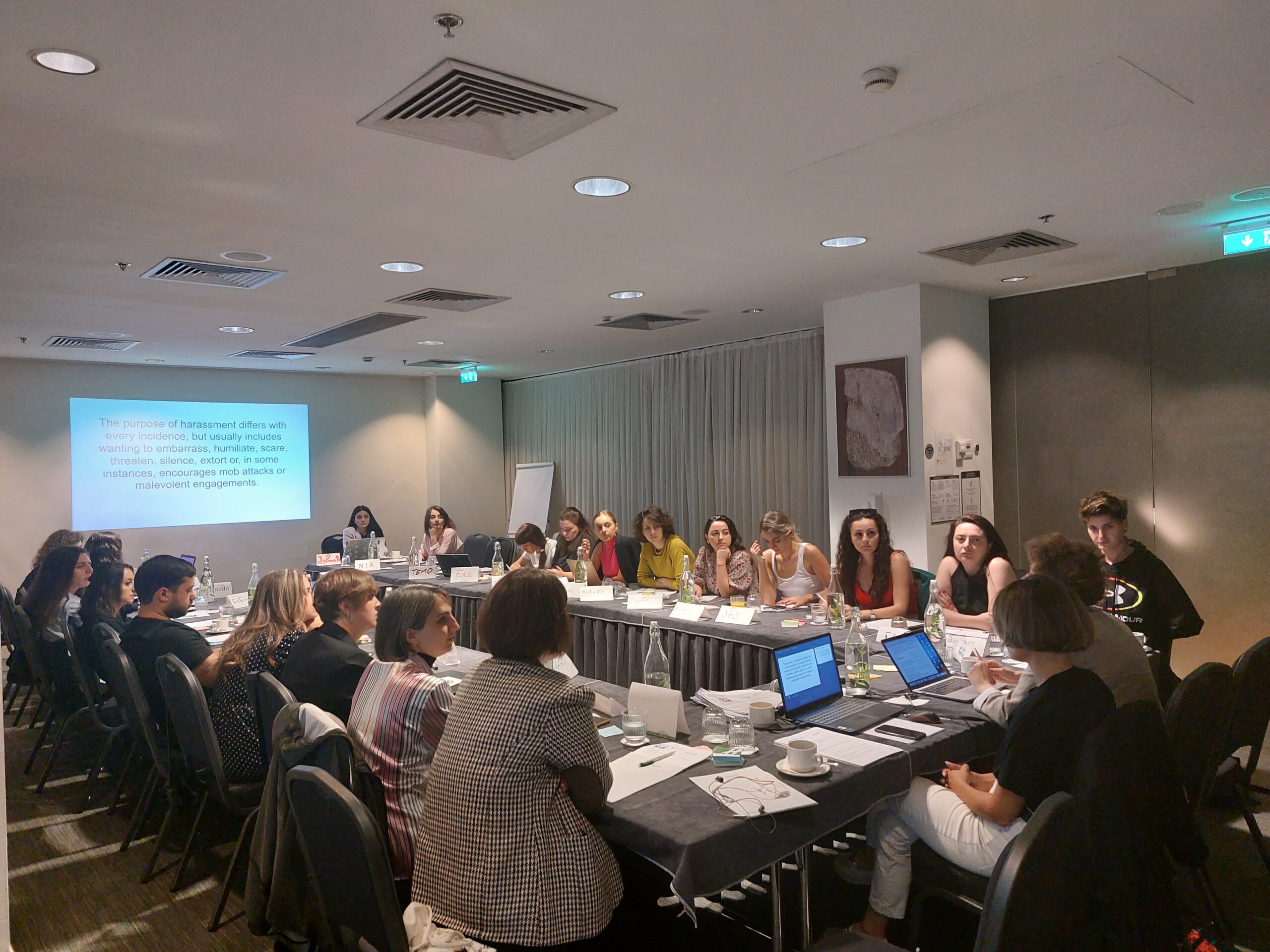ციფრული მოქალაქეობის პრინციპები, გენდერული ძალადობის ონლაინ ფორმები, სამართალდამცავი სტრუქტურების როლი კიბერძალადობასთან ბრძოლაში, საფრთხეების ანალიზი და პრევენცია – ეს ის თემებია, რომლებუც იურისტებმა, სოციალურმა მუშაკმებმა, ფსიქოლოგებმა, ადგილობრივი თვითმმართველობის წარმომადგენლებმა და აქტივისცებმა „საფარის“ ორგანიზებული ტრენინგის ფარგლებში განიხილეს. 4-დღიანი ტრენინგს, რომელიც კიბერძალადობასთან ბრძოლის შესახებ ტრენინგის მხოლოდ პირველი ეტაპია, 30-მდე მონაწილე ესწრებოდა.