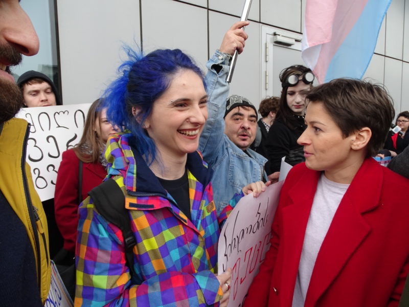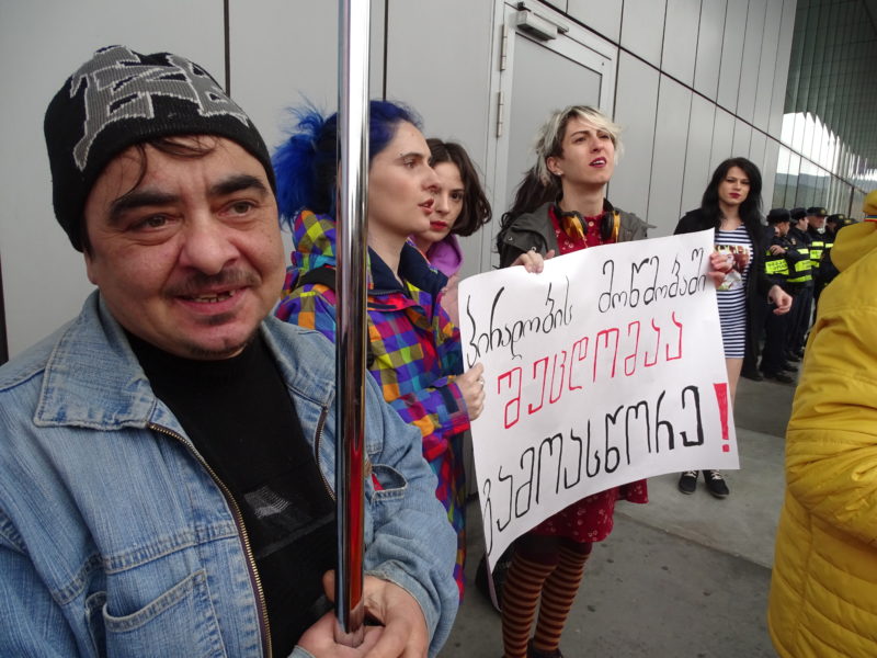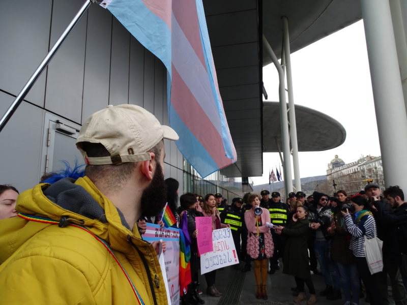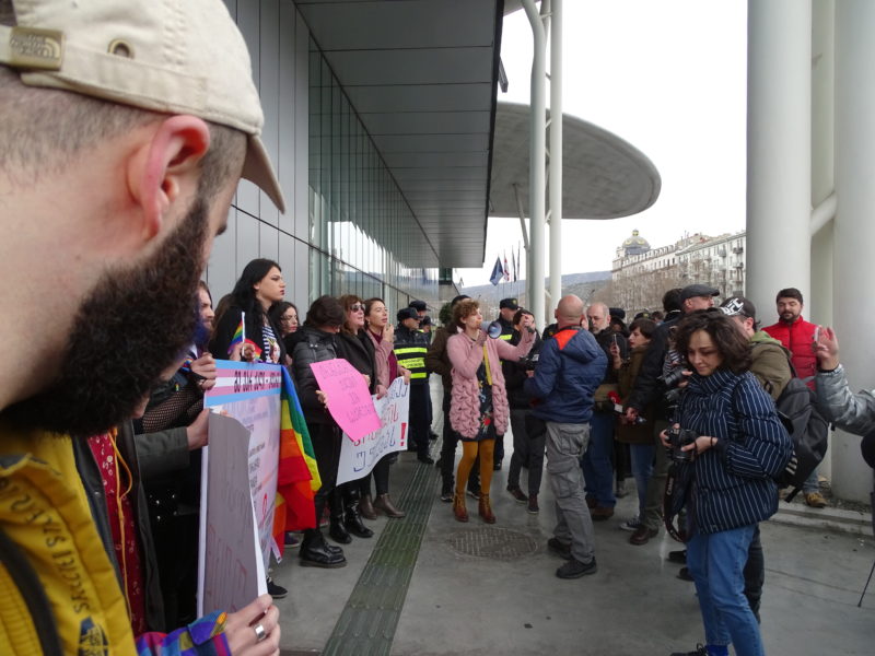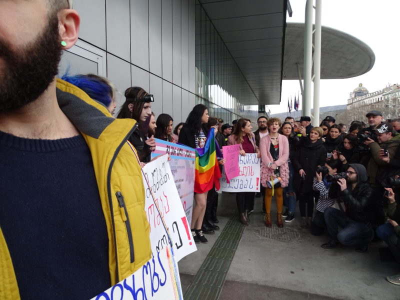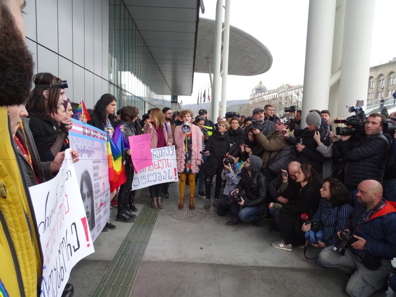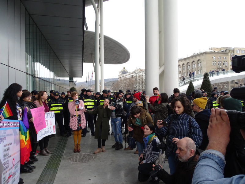 “ქალთა მოძრაობის” წლევანდელი 8 მარტის აქციის ადრესატი იუსტიციის სამინისტროა, რომლისგანაც აქციის მონაწილეებმა ტრანსგენდერი ქალების პირადობის დამადასტურებელ საბუთებში სქესის შეცვლის არაჰუმანური პროცედურის გამარტივება მოითხოვეს. აქცია 15:00-ზე იწყებოდა, მისი კონტრაქცია კი, ე. წ. “ბავშვთა უფლებების დაცვის საზოგადოებამ” 14:00-ზე ჯერ კიდევ გუშინ დააანონსა. კონტრაქციის მონაწილეების ლოზუნგების თანახმად, ისინი იუსტიციის სახლთან კვლავინდებურად “ჰომოსექსუალიზმის წინააღმდეგ” ილაშქრებდნენ და ცდილობდნენ, გადაეფარათ და ჩაეშალათ “ქალთა მოძრაობის” აქცია.