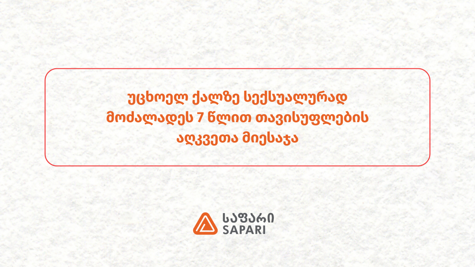 2025 წლის მაისში საფარს მიმართა უცხო ქვეყნის მოქალაქე ქალმა, რომელზეც მეზობელმა მამაკაცმა სექსუალურად იძალადა.